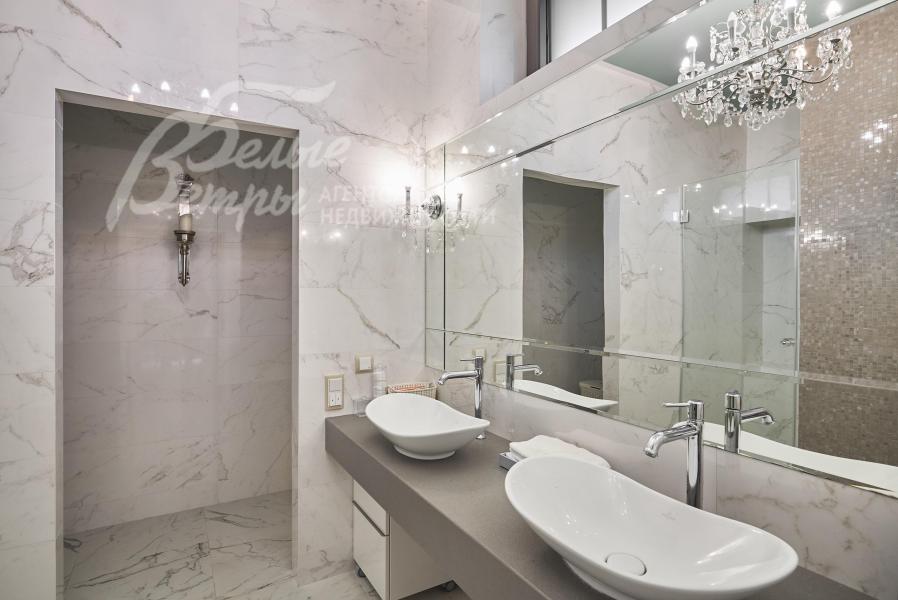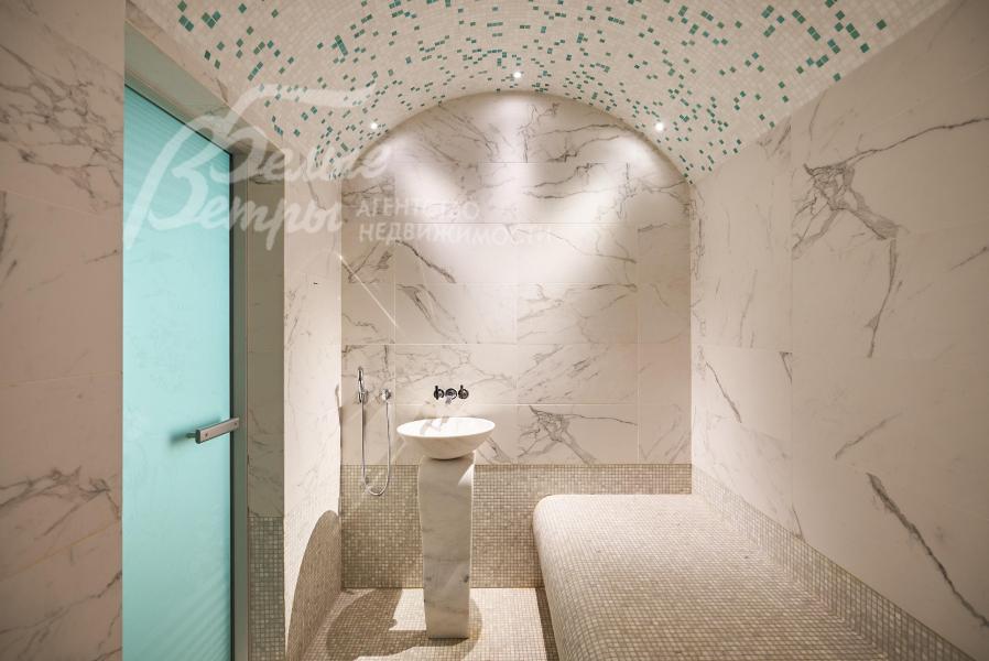 Описание внутренней отделки: высококачественные материалы и стильный дизайн: подоконники из натурального гранита и мрамора; полы - итальянский керамогранит и ламинат коллекции Avatar с резиновой прокладкой производства TerHurne. Дубовая лестница с перилами из бука. Отделка хаммама выполнена мрамором. Нагревание стен и полов занимает всего 15 минут. В сауне красный кедр и гималайская соль создают атмосферу настоящего СПА. Инфракрасная сауна -