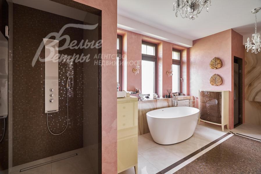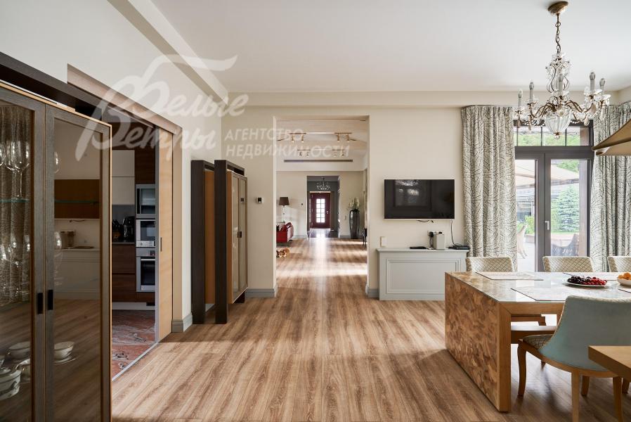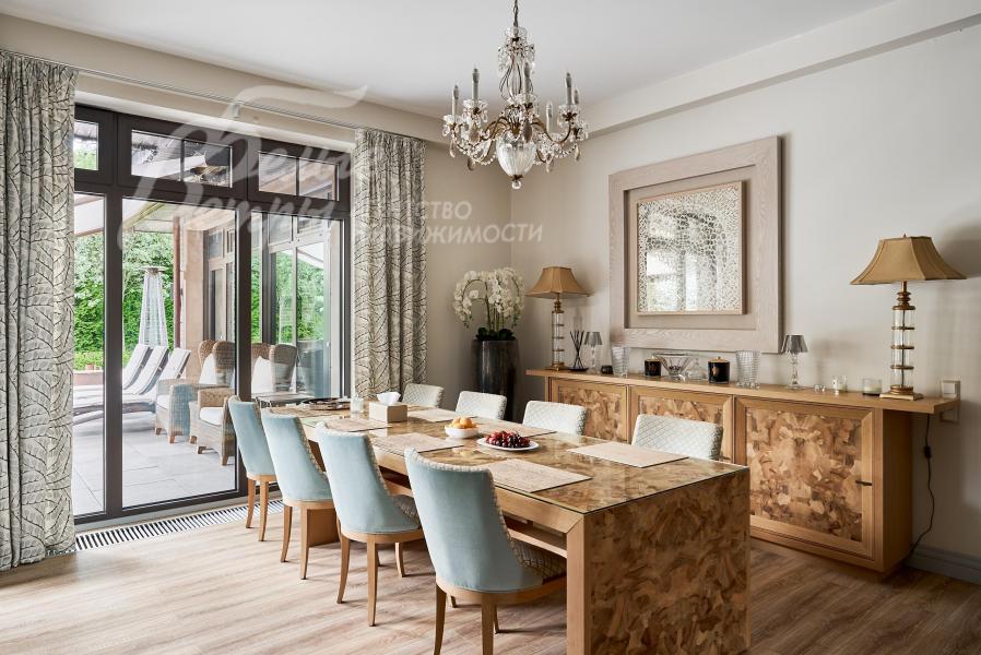 Загородный дом 667 кв.м, с авторской архитектурой и премиальными материалами из Германии в стиле Френка Ллойда Райта, расположенный в одном из топовых поселков Новой Москвы, на прилесном участке с ландшафтом 28 соток. Дом предоставляет уникальную возможность для комфортной жизни благодаря продуманной планировке: в доме собственный SPA с хаммам, сауной, фитнес, две каминные, 6 спален, 7 санузлов, 5 гардеробных Все дома в поселке выстроены в едином архитектурном стиле, все коммуникации центральные. Поселок в окружении леса, есть собственный пруд с пляжем и рекреационные зоны. Закрытый формат: 2 КПП, патруль, камеры - приватность ка привычка. 20 мин до МКАД, 30 мин до МЦД "Санино"