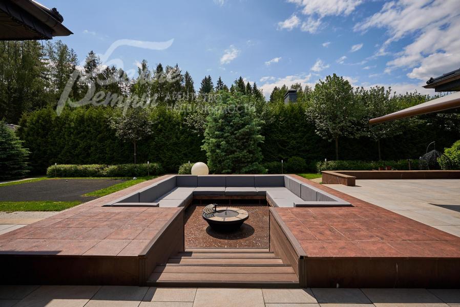 Эстетичная костровая зона отдыха, патио-living, BBQ.